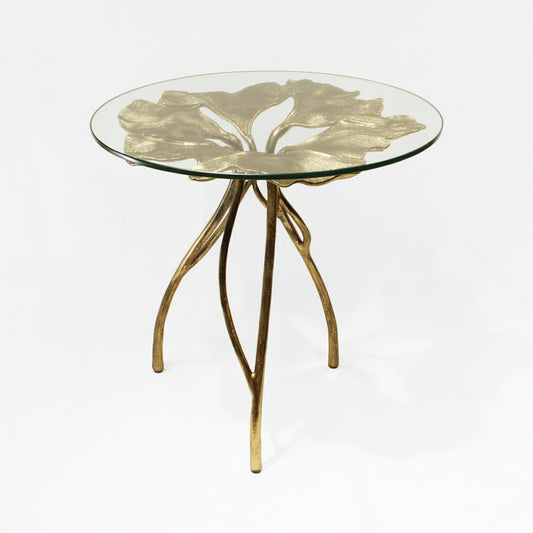 Side Table Antique Brass Leaf Design | 310024