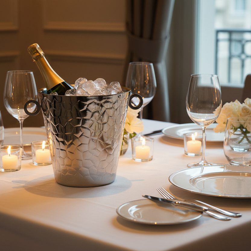 Elevate your next celebration with this stunning champagne bucket. Crafted from durable stainless steel, it features an elegant design that adds a touch of sophistication to any occasion. Its versatile use makes it a must-have for any host or hostess. Add this stylish champagne bucket to your cart now!